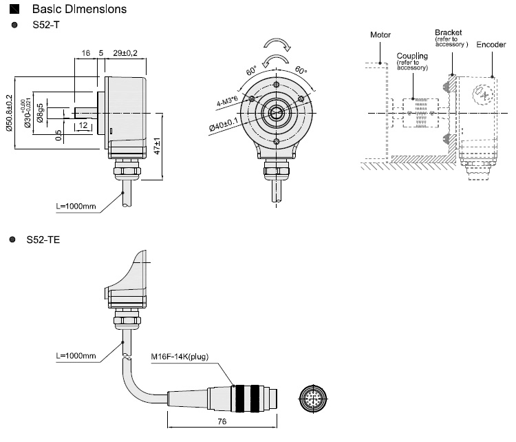 S52 Heavy Duty Solid Shaft rotary encoder ABZUVW phase 2048ppr 4 poles IP66