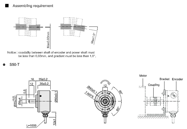 S50 Solid Shaft Incremental encoder 10mm axial length 16mm with 10mm coupling