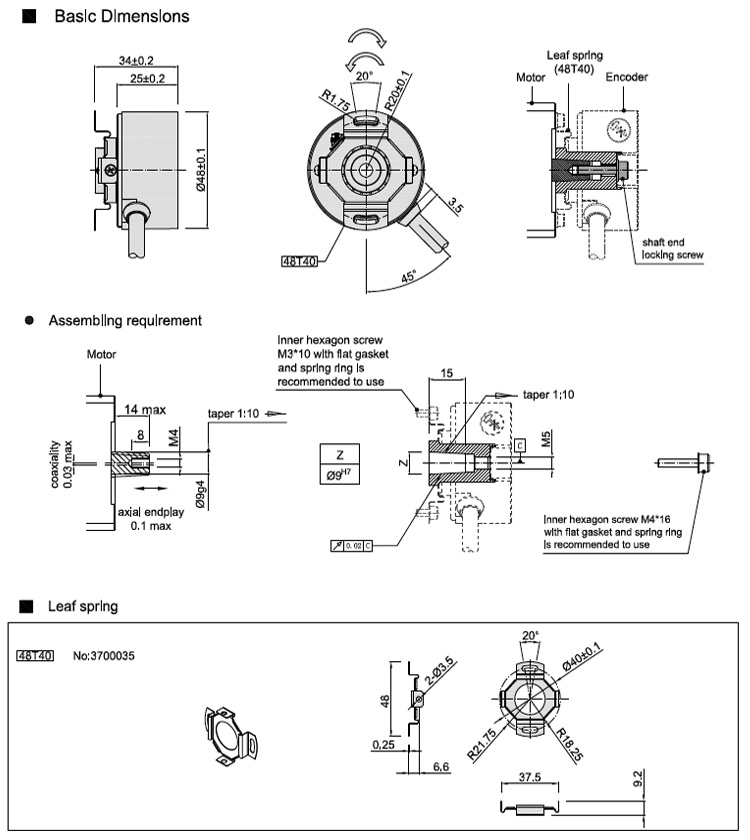 KZ48 Hollow Shaft Servo Motor Encoder Taper shaft motor encoder 9mm taper 1:10 depth 15mm LD output for servo motor